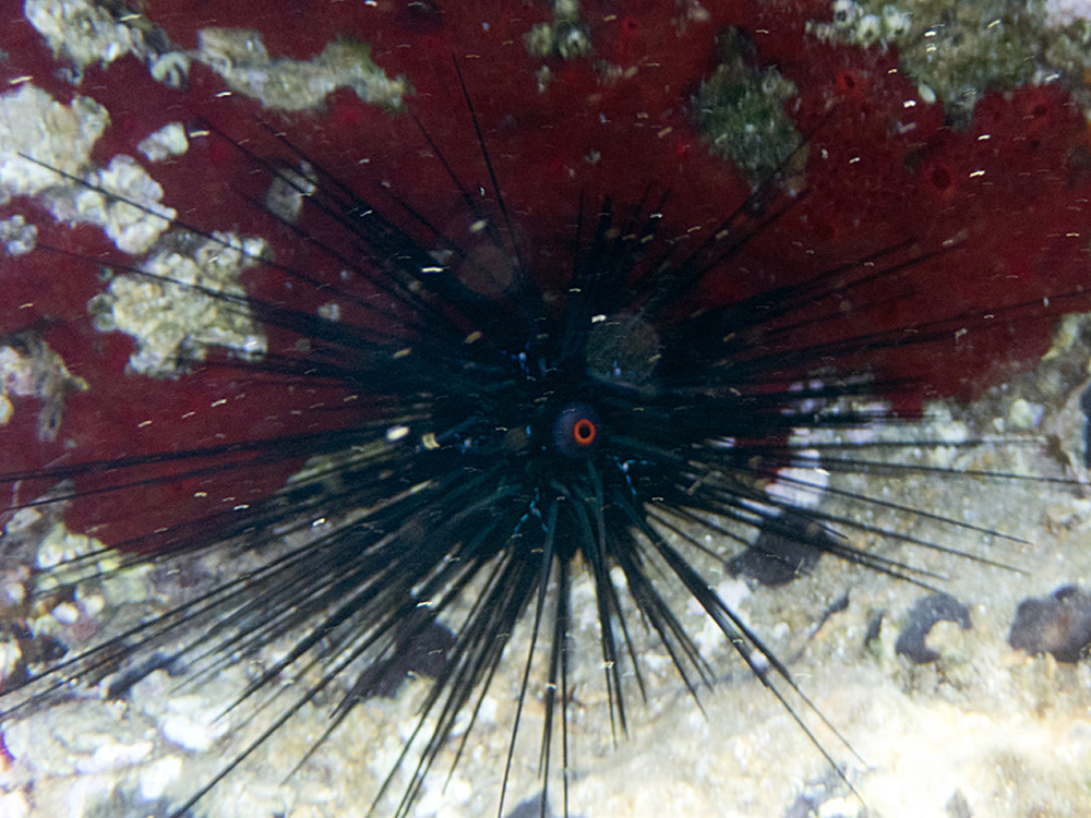It is now present in the Aegean Sea as an invasive species, its larvae having crossed the Suez Canal. The first reported cases in the Mediterranean date back almost 20 years. Disliking strong light, it prefers rocky hollows; its long spines (up to 20 cm) provide excellent protection. It is a major consumer of the algae that grows on the rocks.